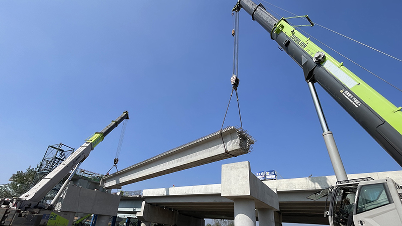 此次架設(shè)的是涼亭樞紐A匝道橋第五聯(lián)25米連續(xù)箱梁,梁板重78噸。為確保首片箱梁的順利架設(shè),項目部多次組織召開運(yùn)梁、架梁專題會議,制定了完善的吊裝和應(yīng)急預(yù)案,對作業(yè)人員進(jìn)行安全技術(shù)交底。同時積極聯(lián)系屬地政府、交警等單位,提前做好運(yùn)梁規(guī)劃路線,交通引導(dǎo)等工作,確保運(yùn)梁過程的安全性。施工過程中,項目技術(shù)和管理人員全程跟蹤,嚴(yán)格執(zhí)行吊裝作業(yè)安全操作規(guī)程,實(shí)現(xiàn)了首片箱梁的安全精準(zhǔn)架設(shè)。