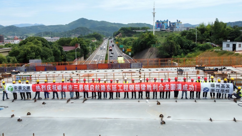 近日,隨著最后一段72.8噸重的鋼箱梁精準(zhǔn)落位,由安徽省交通建設(shè)股份有限公司承建的嵊州市啟航路東延工程主橋鋼箱梁順利合龍。