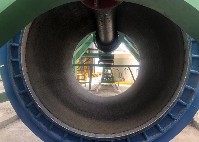 本項(xiàng)目共預(yù)制圓管涵4188節(jié),涵身混凝土設(shè)計(jì)標(biāo)號(hào)C30,采用先預(yù)制后安裝的施工方法,所預(yù)制的Φ1.5m涵管的管壁厚度為16cm,標(biāo)準(zhǔn)管節(jié)長(zhǎng)2m,輔助管節(jié)長(zhǎng)0.5m。施工采用干硬性混凝土,使用懸輥機(jī)輥壓離心制管法預(yù)制管節(jié)。