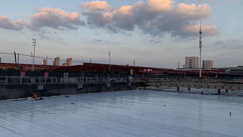 宿松路快速化改造工程地處城市建成區(qū),周邊環(huán)境復雜,施工面臨地下管網(wǎng)縱橫交錯、基坑開挖深度大、結(jié)構(gòu)防裂、防水要求高等難題。面對復雜而苛刻的條件,安徽交建項目部實現(xiàn)了多項行業(yè)“首創(chuàng)”:針對市政干作業(yè)基坑圍護樁垂直度控制不佳,我部采購2臺RSM-HGT(D)型超聲波成孔質(zhì)量檢測儀對樁基垂直進行檢測、及時糾偏;施工過程中使用全站儀對旋挖鉆機桅桿垂直度進行檢查、糾偏;為有效控制地道側(cè)墻混凝土裂縫,選擇摻加ART-MPC無機納米抗裂密實劑,提高混凝土抗裂性。養(yǎng)護采用水能量節(jié)水保濕養(yǎng)護膜,將液態(tài)水轉(zhuǎn)化為固態(tài)水,通過毛細管作用,源源不斷的向養(yǎng)護面滲透,同時吸收砼水化熱過程中蒸發(fā)水,在一個養(yǎng)護周期內(nèi)保證養(yǎng)護體表面保持濕潤,相對濕度≥90%;為避免變形縫滲水情況,施工過程中增設一道中埋式止水帶。同時針對止水帶安裝及焊接等薄弱環(huán)節(jié)加強控制,安排固定人員培訓,舉辦焊接比賽,提升焊接技術。