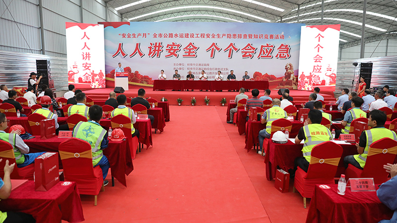 6月19日,由蚌埠市交通運(yùn)輸局主辦,蚌埠市交通運(yùn)輸綜合行政執(zhí)法支隊和安徽省五蒙高速公路開發(fā)有限公司承辦,安徽省交通建設(shè)股份有限公司協(xié)辦的“安全生產(chǎn)月”蚌埠市公路水運(yùn)建設(shè)工程安全生產(chǎn)隱患排查暨安全知識競賽活動,在五蒙高速公路04標(biāo)拌和站隆重舉行。