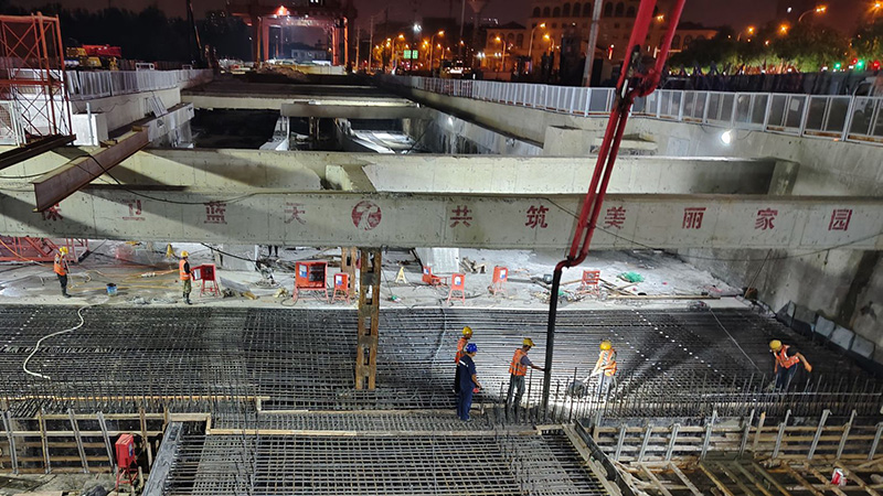 近日,由安徽省交通建設(shè)股份有限公司承建的合肥新橋機(jī)場(chǎng)S1線土建施工總承包1標(biāo)四里河路施工現(xiàn)場(chǎng),伴隨最后一塊頂板的澆筑完成,標(biāo)志著四里河路車站主體結(jié)構(gòu)順利實(shí)現(xiàn)封頂。