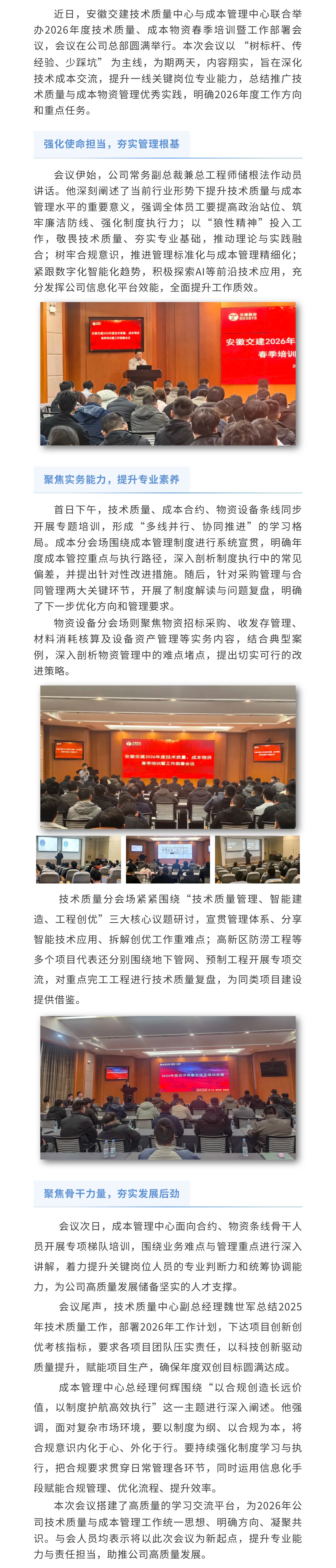 安徽交建2026年度技術(shù)質(zhì)量、成本物資春季培訓(xùn)暨工作部署會(huì)議圓滿舉行