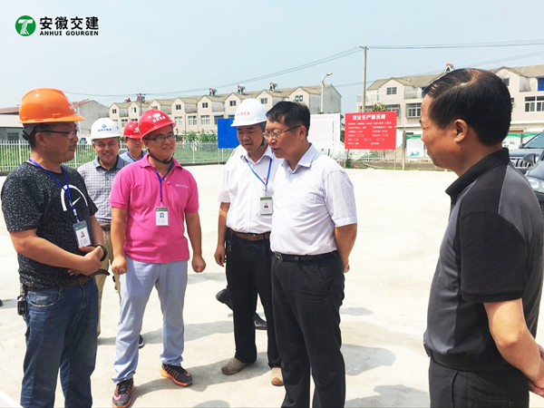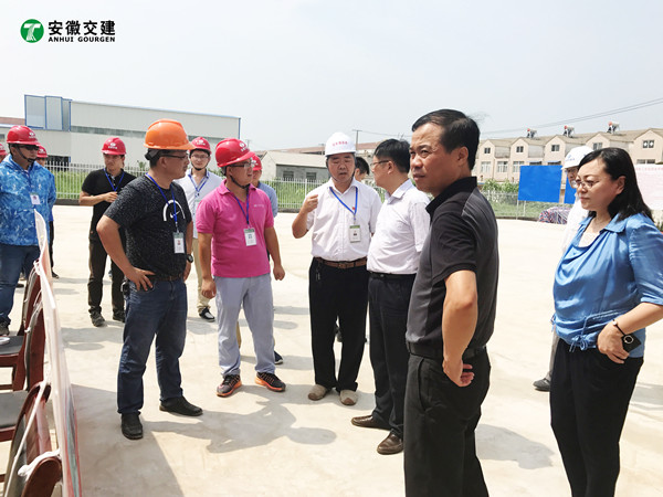 7月18日,安徽省交通控股集團總經(jīng)理錢東升、建管處處長蘇新國、項目辦主任鄒正明等領導一行蒞臨安徽交建滁淮高速定長段路面一標項目部進行檢查指導。