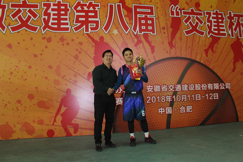 在閉幕式上,安徽交建領(lǐng)導(dǎo)吳學(xué)懿、陳明洋、吳小輝、柳欣分別為冠軍、亞軍、季軍和MVP頒發(fā)獎杯并表示祝賀。最后,吳總宣布本屆籃球比賽圓滿落幕,期待明年再會!