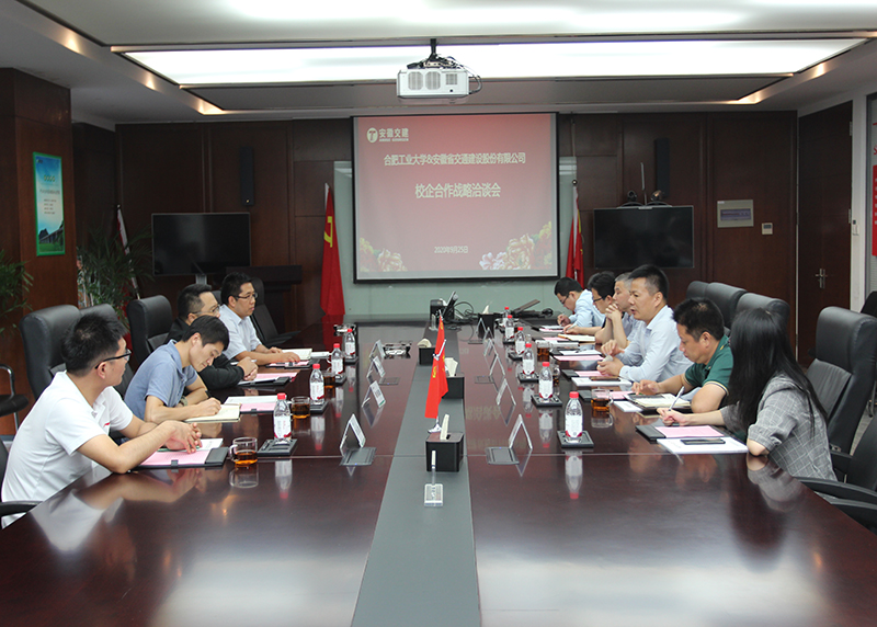 2020年9月25日下午,合肥工業(yè)大學(xué)汽車與交通工程學(xué)院黨委副書記、紀(jì)委書記張金偉等一行四人蒞臨安徽省交通建設(shè)股份有限公司,就校企戰(zhàn)略合作相關(guān)事宜進(jìn)行洽談。公司總裁彭小毛、總工程師儲根法、副總裁陳明洋等出席洽談會,會議由交建股份副總裁吳小輝主持。